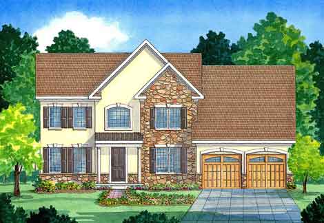 The Aronimink is a fresh new home design featuring a two-story family room, private study and a spacious kitchen. Solid value and an attractive floor plan make the Aronimink a perfect choice for families.