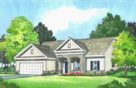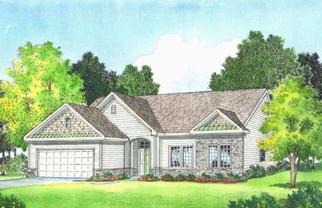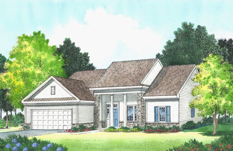 The Fenwick is a contemporary, open floor plan designed for today's more informal style of living. A great room opens up to the kitchen and dining area, while a computer alcove overlooks the spacious front porch.