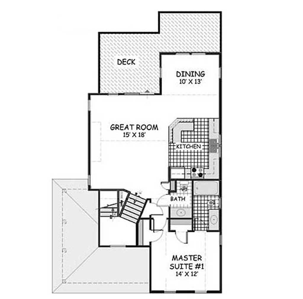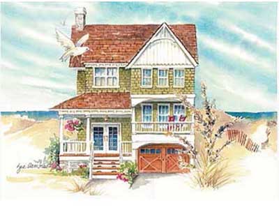The Atlantic’s open floor plan and two master bedroom suites make it a popular choice in shore home designs. The kitchen features a center island and is open to the great room. A covered porch on the front of the home and a rear deck provide ample exterior living space.