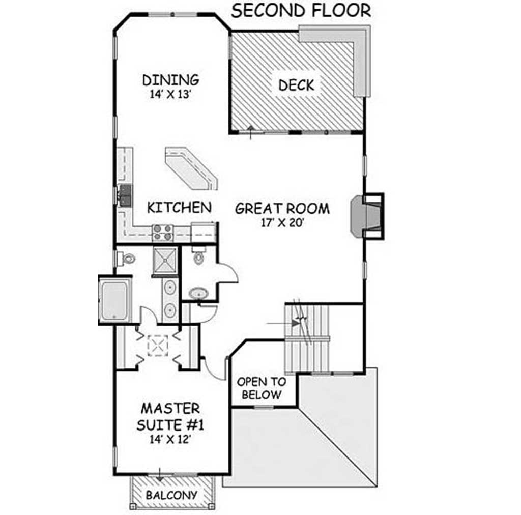 The Cove Point has a spacious kitchen that is open to both a formal dining area and a great room. Two master bedroom suites – one on each living level – offer convenience and flexibility. A covered porch and a deck provide outdoor living spaces at the front and rear of the home.